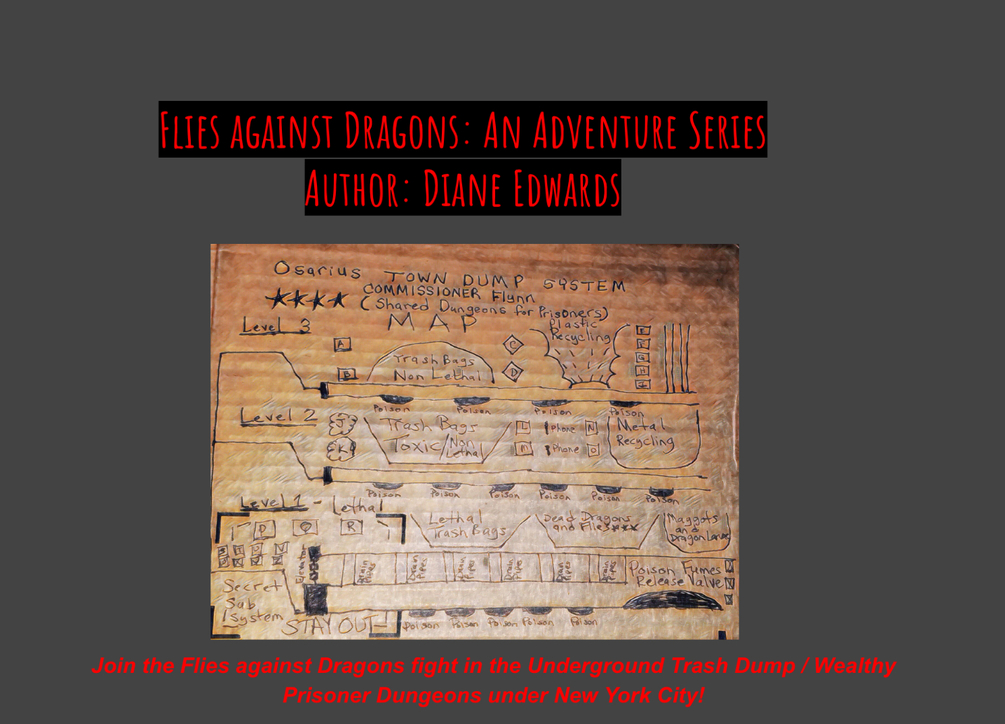 This story contains Adventures and Battles across 3 Levels of a Massive Underground Trash Dump with Tunnels and Dungeons. Based in Manhattan, 10,000 Mosquitos have been poisoned to reduce disease. They survive and the failed extermination liquifies portions of their inner Genome DNA and Brain Molecules. Their size and stealth regresses centuries back to large biting flies. They attack specially bred Dragons that fight crime. The mission is to destroy them and save the Dragons.